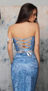 ДЪЛЪГ СЕТ ТОП С ПОЛА CASSIA ДАНТЕЛА ГЛИТЕР КАМЪНИ СВЕТЛО СИН