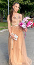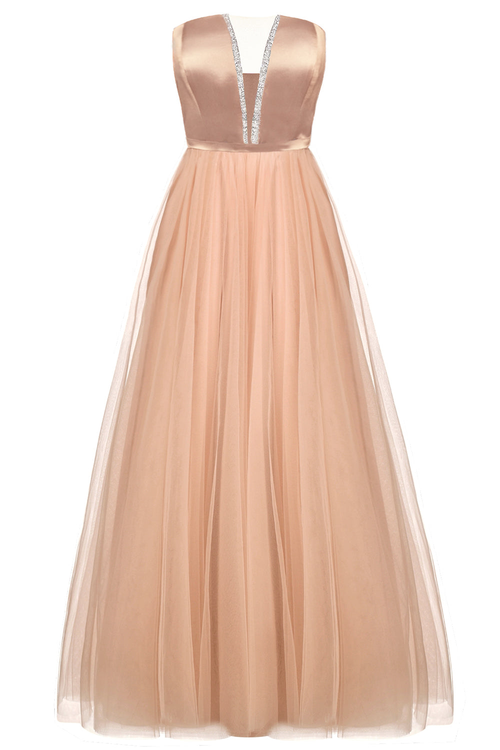 ДЪЛЪГ СЕТ ТОП С ПОЛА CASSIE САТЕН ТЮЛ БЕЖОВ / НЮД