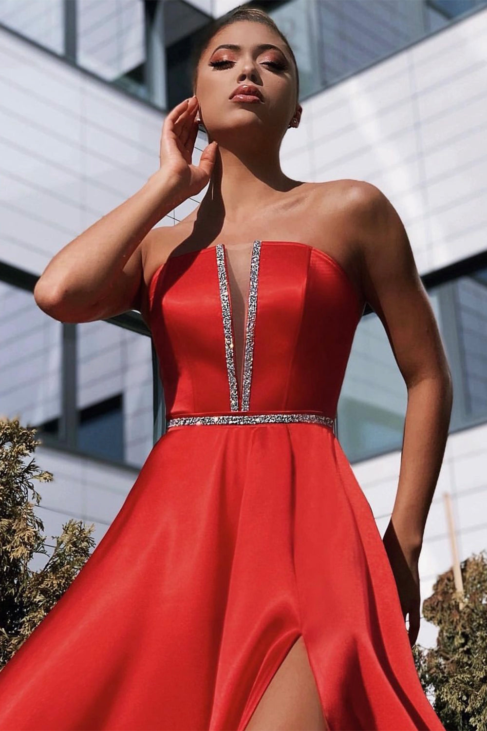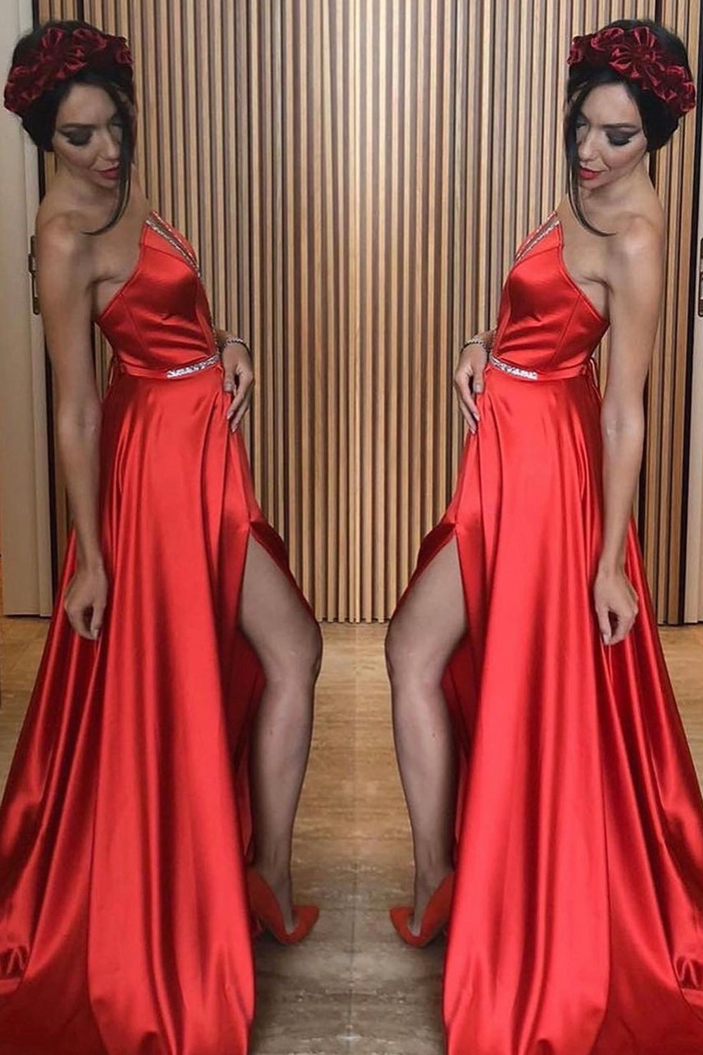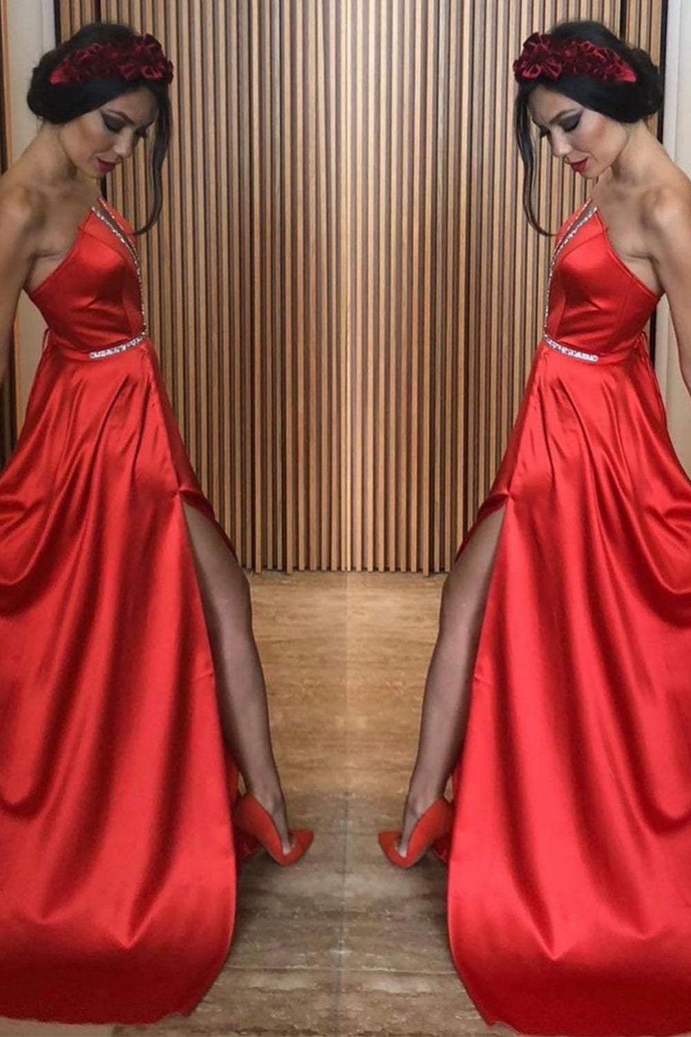 ДЪЛЪГ СЕТ ТОП С ПОЛА CELIN САТЕН ЧЕРВЕН