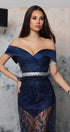 ДЪЛЪГ СЕТ ТОП С ПОЛА DANIA ДАНТЕЛА ГЛИТЕР САТЕН ТЪМНО СИН