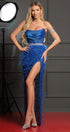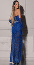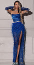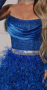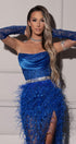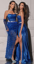 ДЪЛЪГ СЕТ ТОП С ПОЛА DARA ДАНТЕЛА ГЛИТЕР САТЕН ПЕРА КОБАЛТОВО СИН