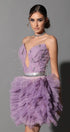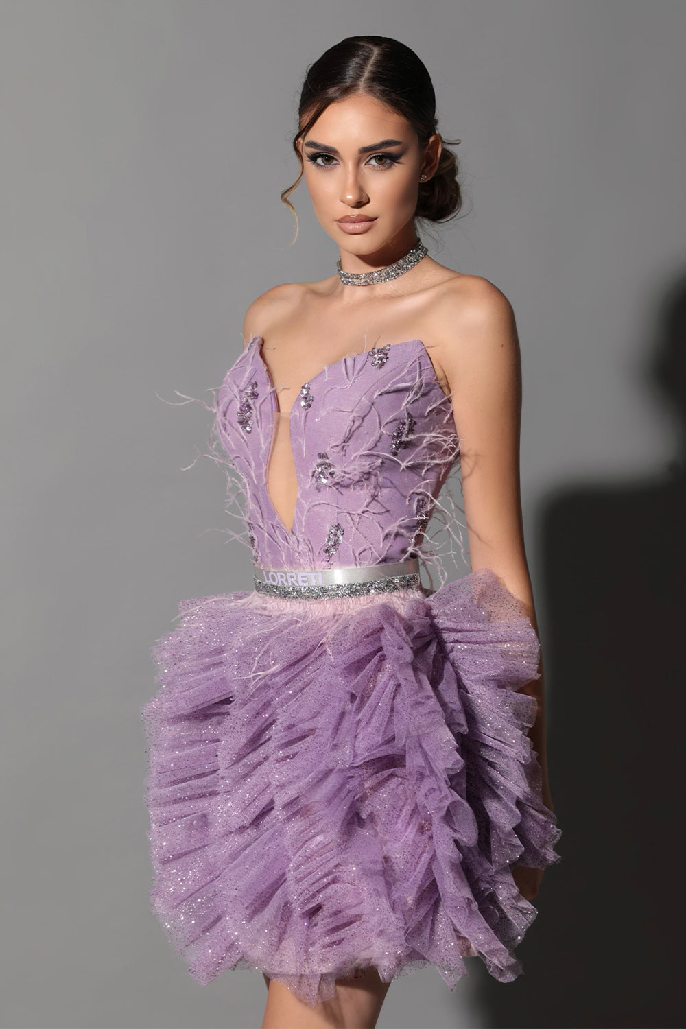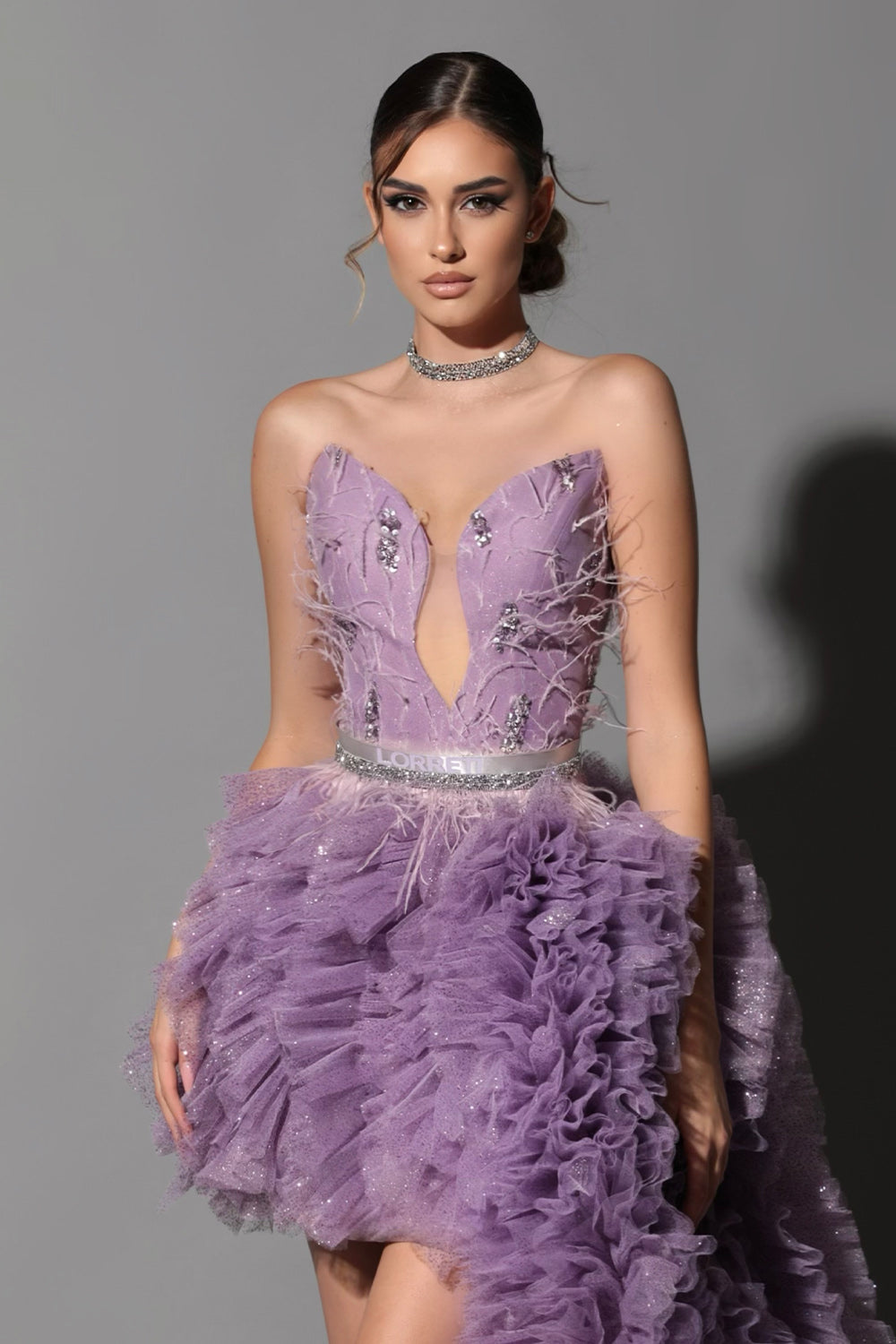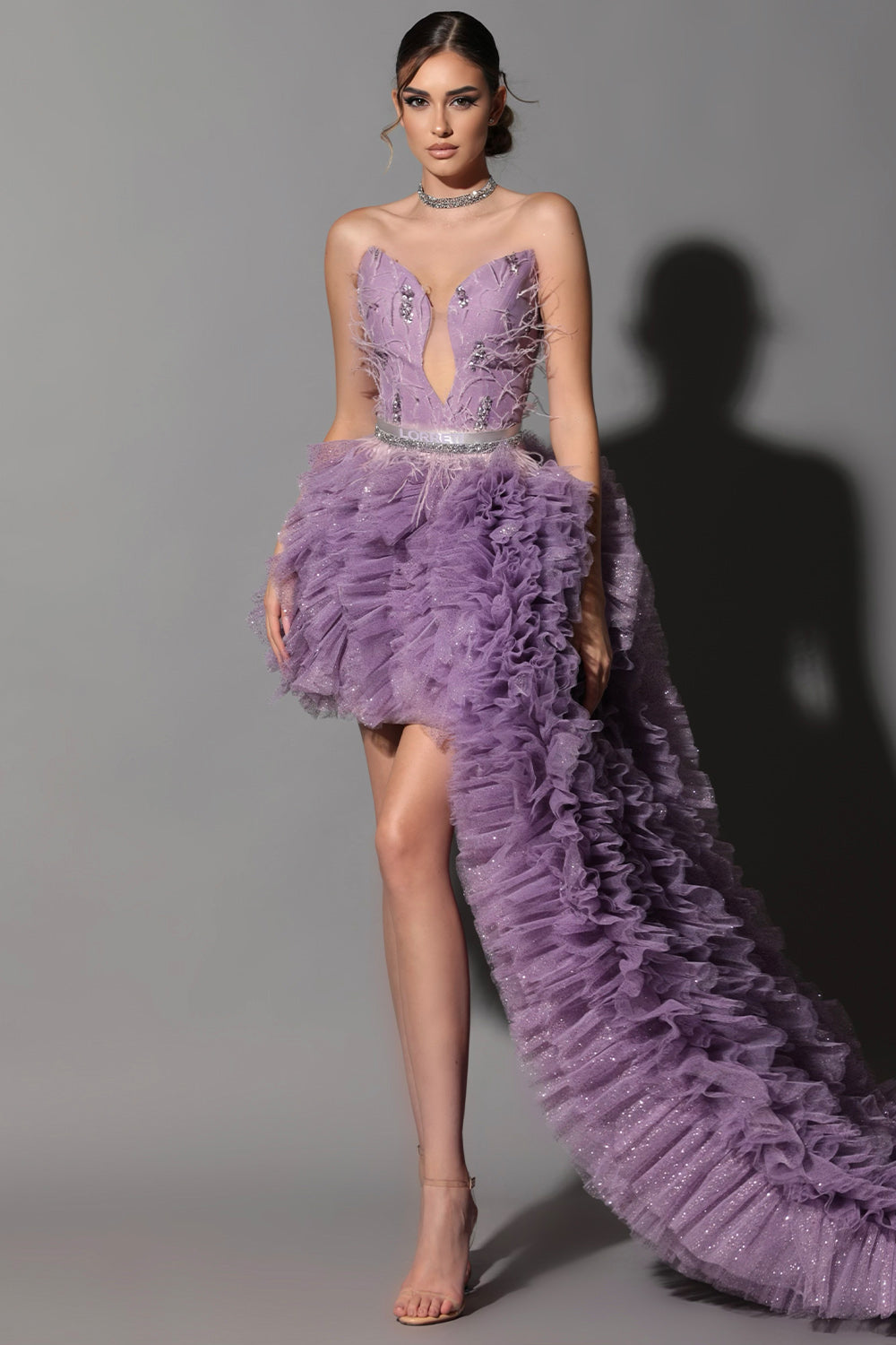 ДЪЛЪГ СЕТ ТОП С ПОЛА DEMETRIA ПАЙЕТИ ПЕРА ТЮЛ БРОКАТ ЛАВАНДУЛА