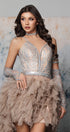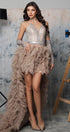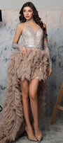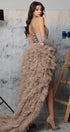 ДЪЛЪГ СЕТ ТОП С ПОЛА DENISHA ДАНТЕЛА ГЛИТЕР КАМЪНИ ТЮЛ БРОКАТ СРЕБЪРЕН С НЮД