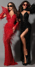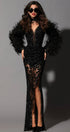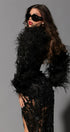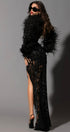 ДЪЛЪГ СЕТ ТОП С ПОЛА DIONNE ПАЙЕТИ КАМЪНИ ПЕРА ЧЕРЕН