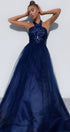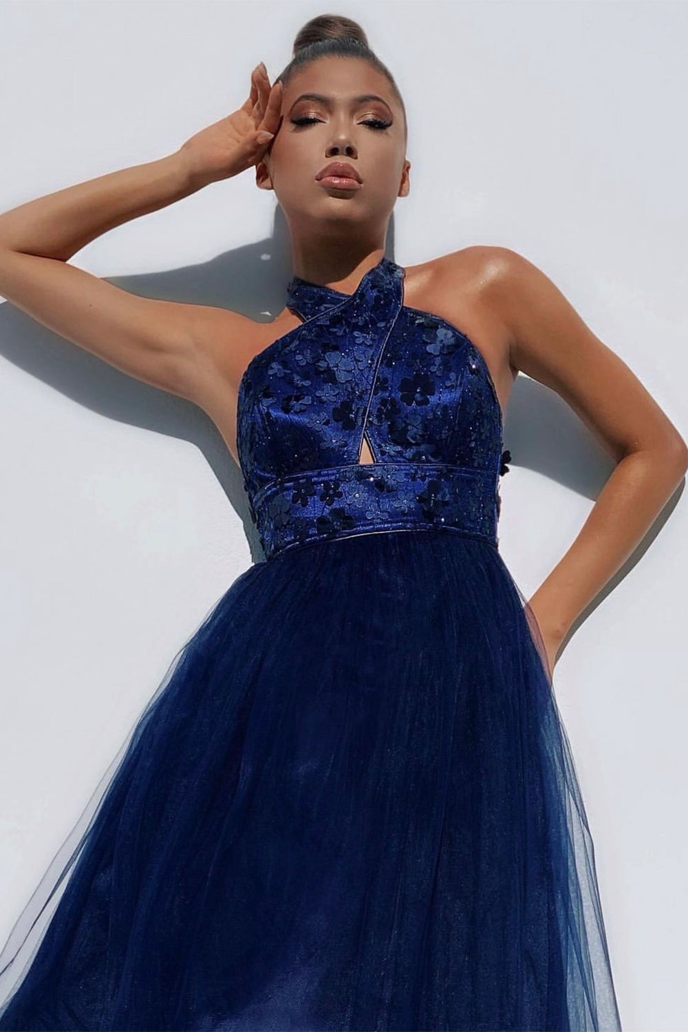 ДЪЛЪГ СЕТ ТОП С ПОЛА ELEANOR САТЕН ДАНТЕЛА ТЮЛ ТЪМНО СИН