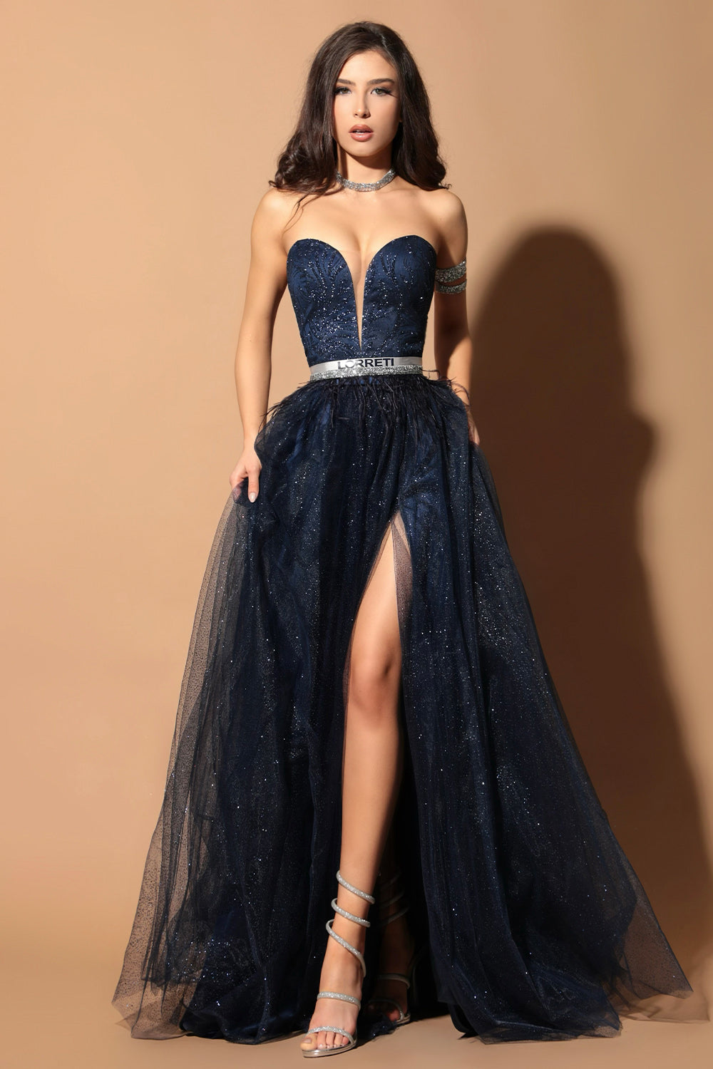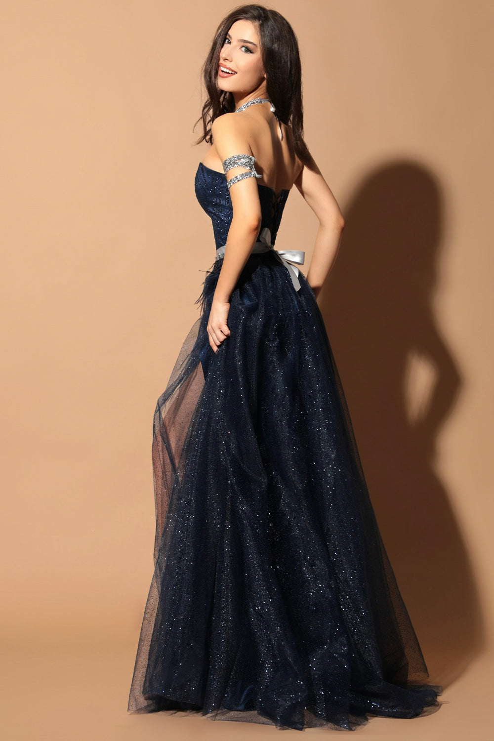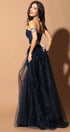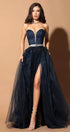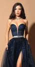 ДЪЛЪГ СЕТ ТОП С ПОЛА ELENA ДАНТЕЛА ГЛИТЕР ТЮЛ БРОКАТ ТЪМНО СИН