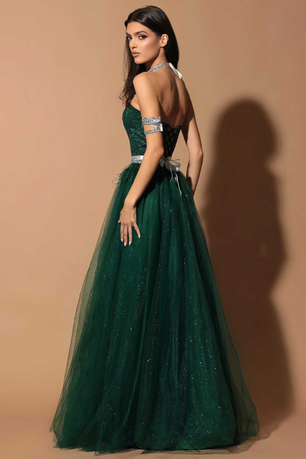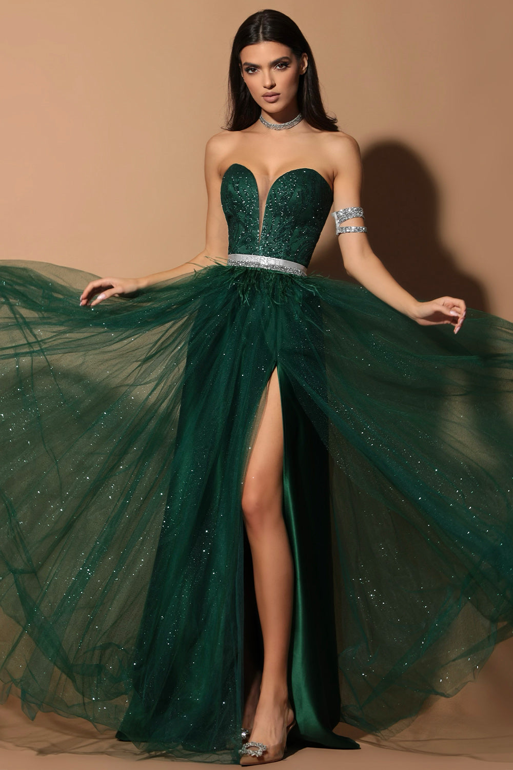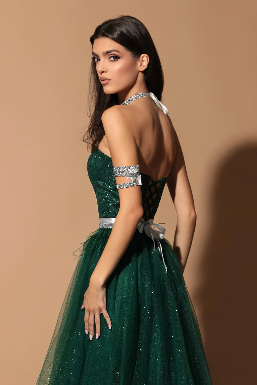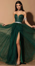 ДЪЛЪГ СЕТ ТОП С ПОЛА ELENA ДАНТЕЛА ГЛИТЕР ТЮЛ БРОКАТ ТЪМНО ЗЕЛЕН