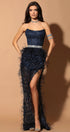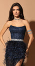 ДЪЛЪГ СЕТ ТОП С ПОЛА EMILIA ДАНТЕЛА ГЛИТЕР ПЕРА ТЪМНО СИН