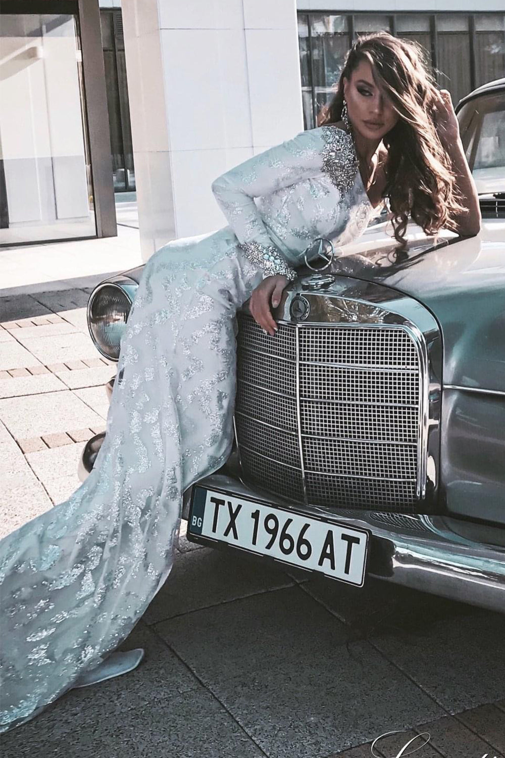 Моля, не поставяйте роклята в пералня с центрофуга или в сушилня, както и не прилагайте агресивно третиране, за да запазите нейния луксозен силует и качество.