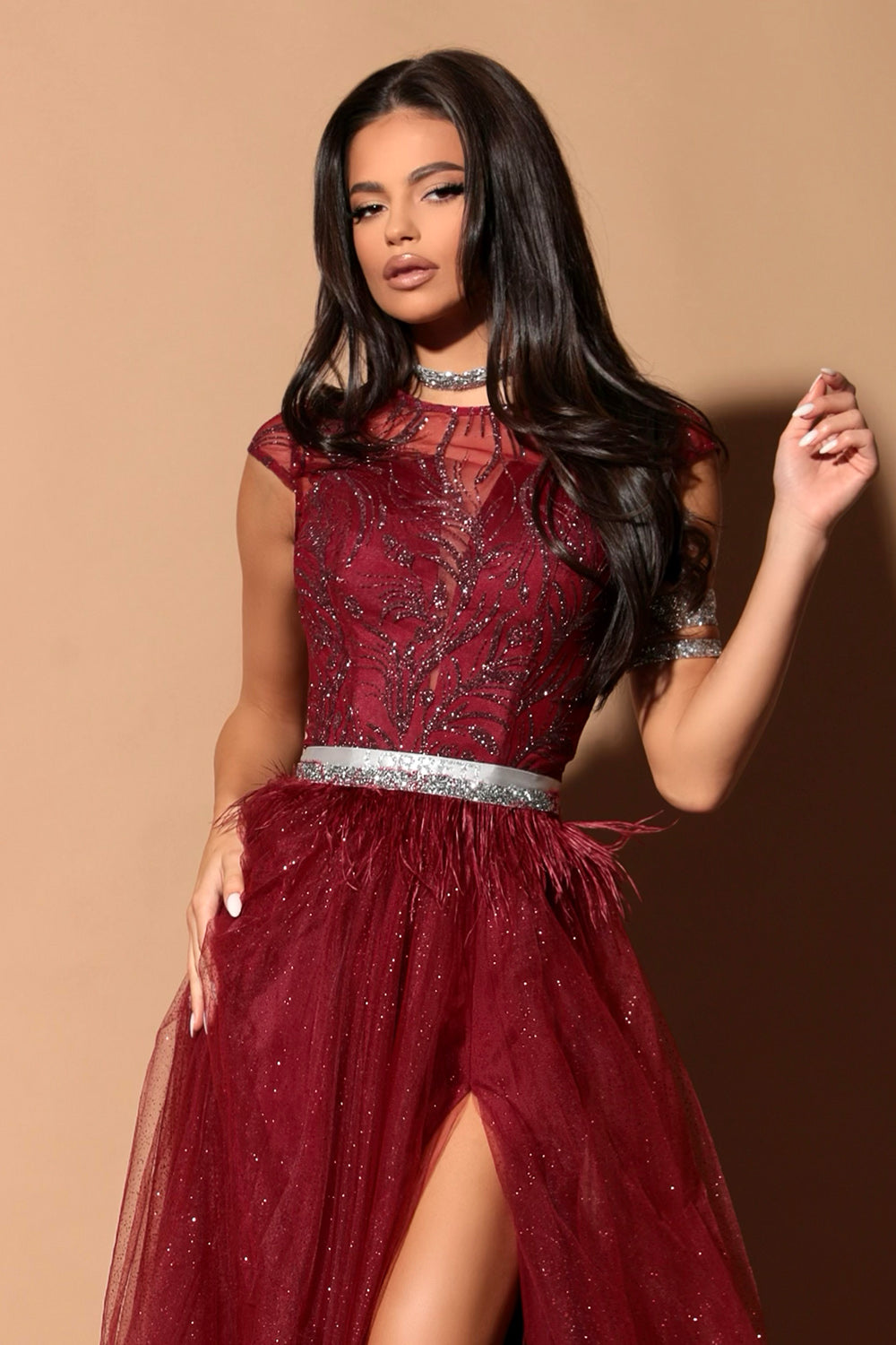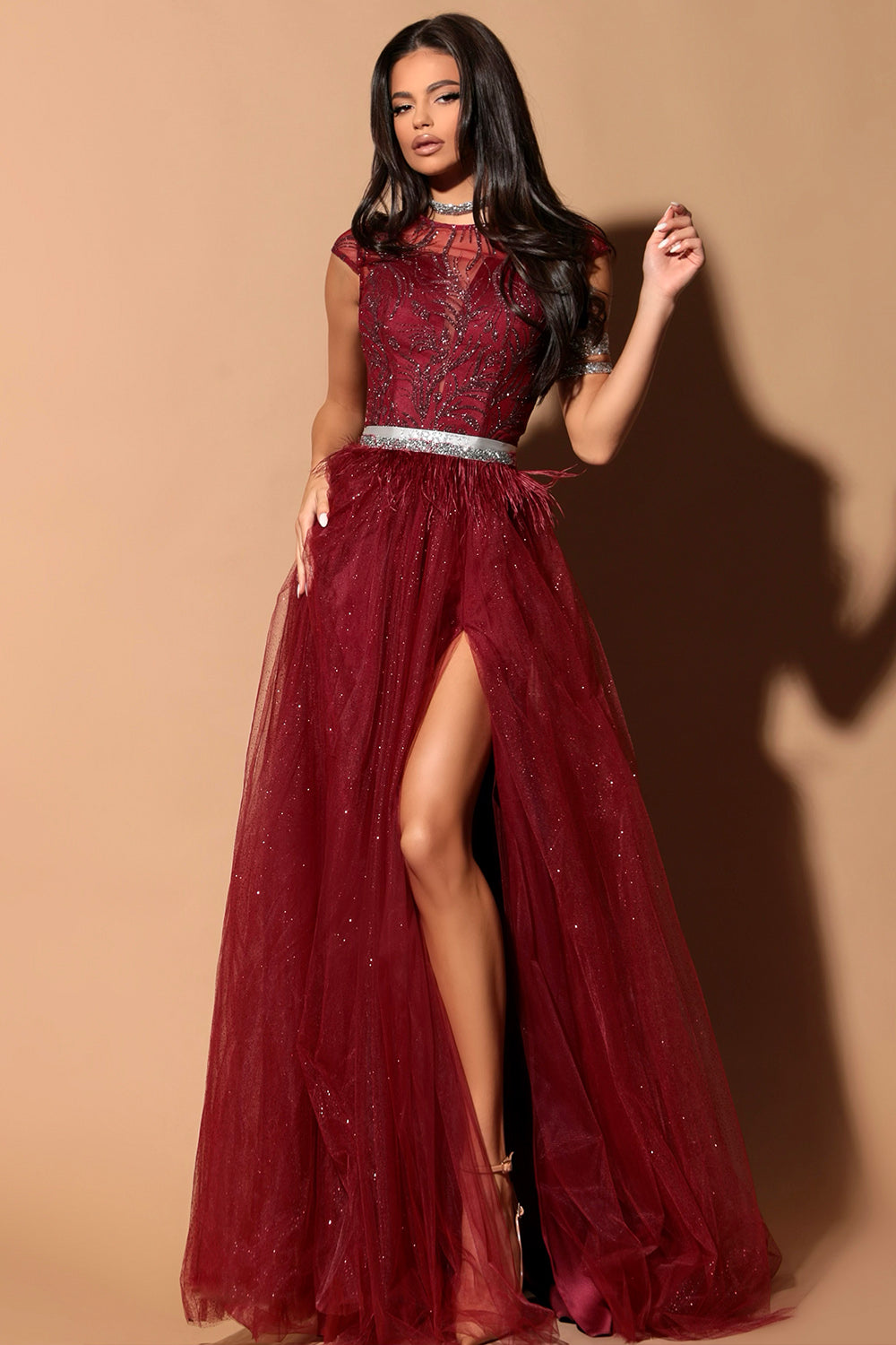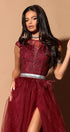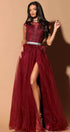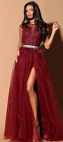 ДЪЛЪГ СЕТ ТОП С ПОЛА ETTA ДАНТЕЛА ГЛИТЕР ТЮЛ БРОКАТ БОРДО