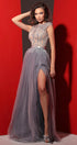 ДЪЛЪГ СЕТ ТОП С ПОЛА ETTA ДАНТЕЛА ГЛИТЕР ТЮЛ БРОКАТ СРЕБЪРЕН С НЮД