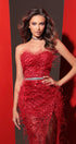 ДЪЛЪГ СЕТ ТОП С ПОЛА FEATHER PRINCESS ДАНТЕЛА ГЛИТЕР ПЕРА ЧЕРВЕН