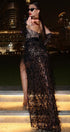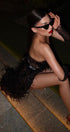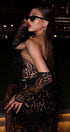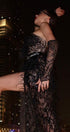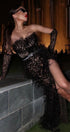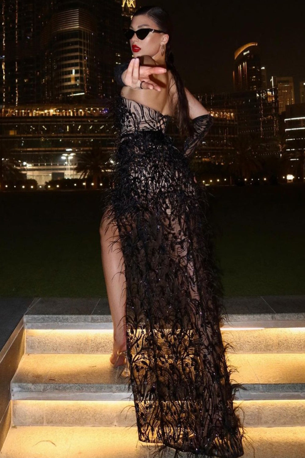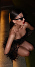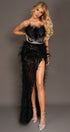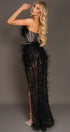 ДЪЛЪГ СЕТ ТОП С ПОЛА FEATHER PRINCESS ДАНТЕЛА ГЛИТЕР ПЕРА ЧЕРЕН С НЮД