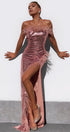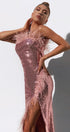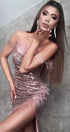 ДЪЛЪГ СЕТ ТОП С ПОЛА FRANCESCA ПАЙЕТИ ПЕРА ПЕПЕЛ ОТ РОЗИ