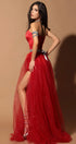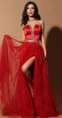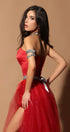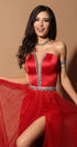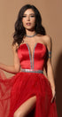 ДЪЛЪГ СЕТ ТОП С ПОЛА FROZEN САТЕН КАМЪНИ ТЮЛ БРОКАТ ЧЕРВЕН