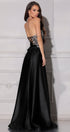 ДЪЛЪГ СЕТ ТОП С ПОЛА GRACELYN ДАНТЕЛА ГЛИТЕР САТЕН ЧЕРЕН С НЮД