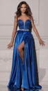 ДЪЛЪГ СЕТ ТОП С ПОЛА GRACELYN ДАНТЕЛА ГЛИТЕР САТЕН КОБАЛТОВО СИН