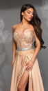 ДЪЛЪГ СЕТ ТОП С ПОЛА GRACELYN ДАНТЕЛА ГЛИТЕР САТЕН ЗЛАТЕН