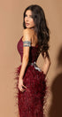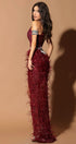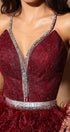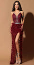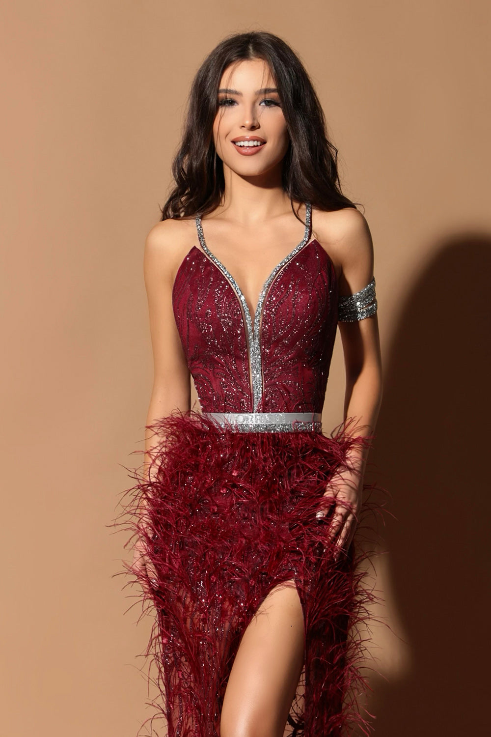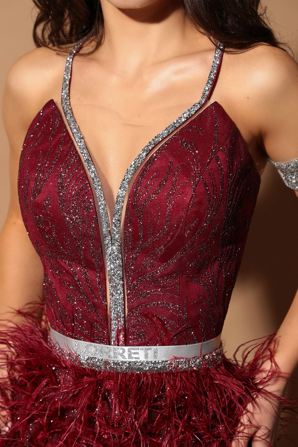 ДЪЛЪГ СЕТ ТОП С ПОЛА HANNAH ДАНТЕЛА ГЛИТЕР КАМЪНИ ПЕРА БОРДО