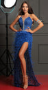 ДЪЛЪГ СЕТ ТОП С ПОЛА HANNAH ДАНТЕЛА ГЛИТЕР КАМЪНИ ПЕРА КОБАЛТОВО СИН