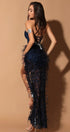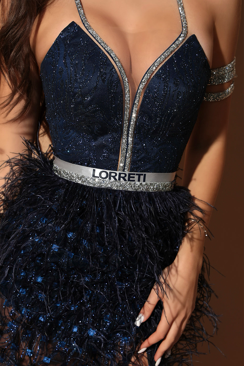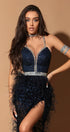 ДЪЛЪГ СЕТ ТОП С ПОЛА HANNAH ДАНТЕЛА ГЛИТЕР КАМЪНИ ПЕРА ТЪМНО СИН