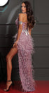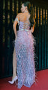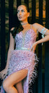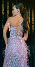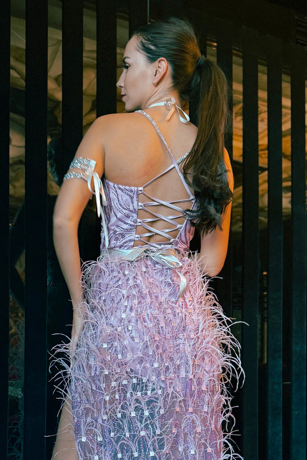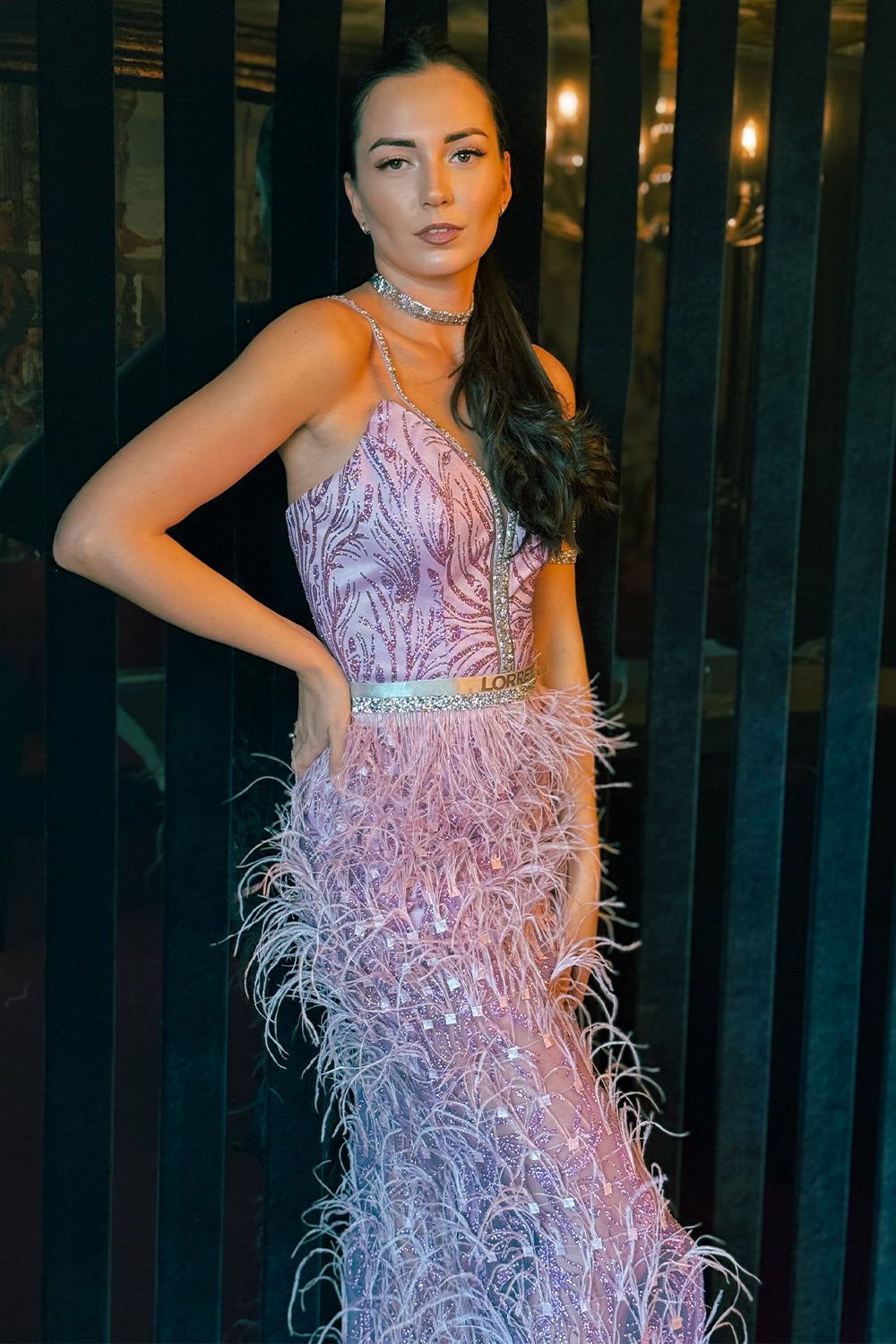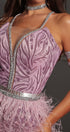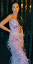 ДЪЛЪГ СЕТ ТОП С ПОЛА HANNAH ДАНТЕЛА ГЛИТЕР КАМЪНИ ПЕРА ЛАВАНДУЛА