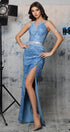 ДЪЛЪГ СЕТ ТОП С ПОЛА HARMONI ДАНТЕЛА ГЛИТЕР ПЕРА СВЕТЛО СИН