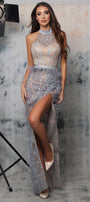 ДЪЛЪГ СЕТ ТОП С ПОЛА HEATHER ДАНТЕЛА ГЛИТЕР ПЕРА СРЕБЪРЕН С НЮД