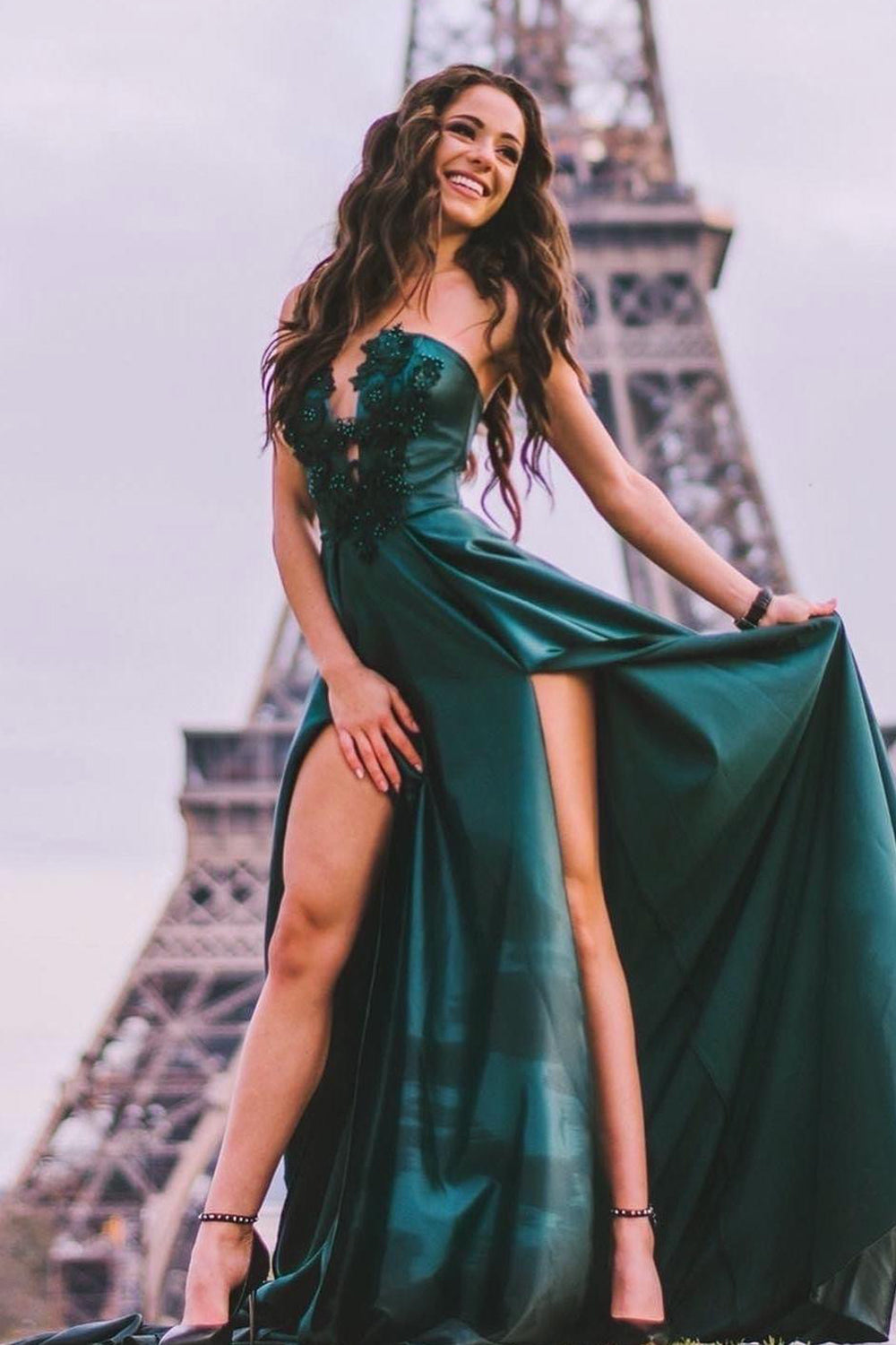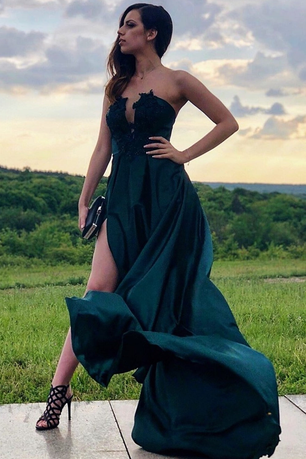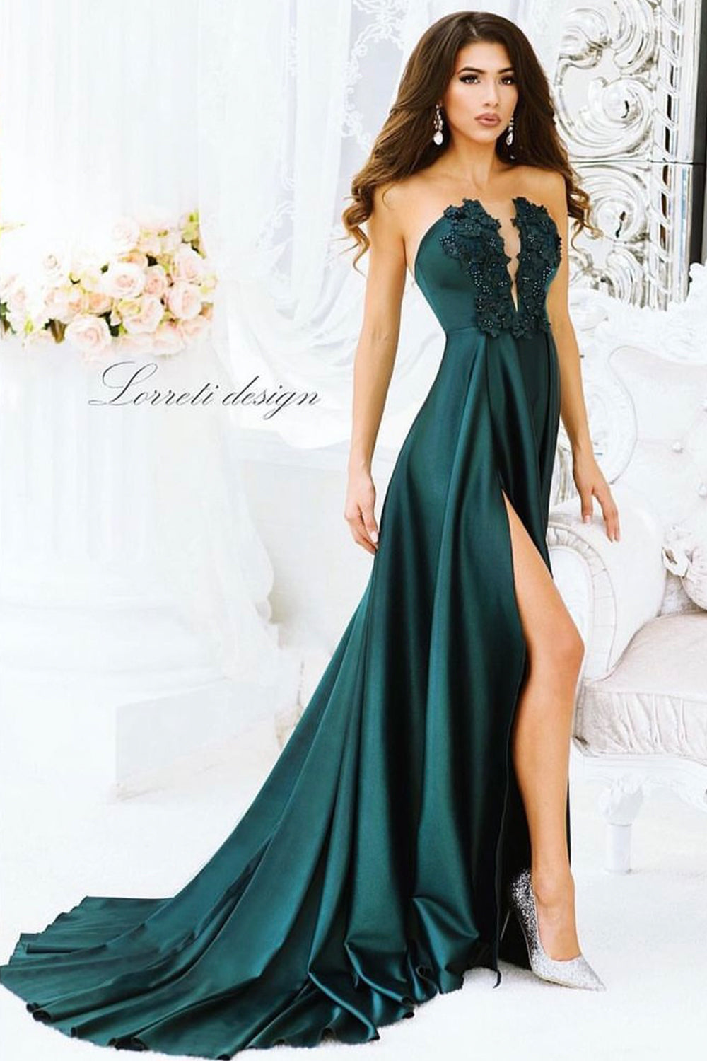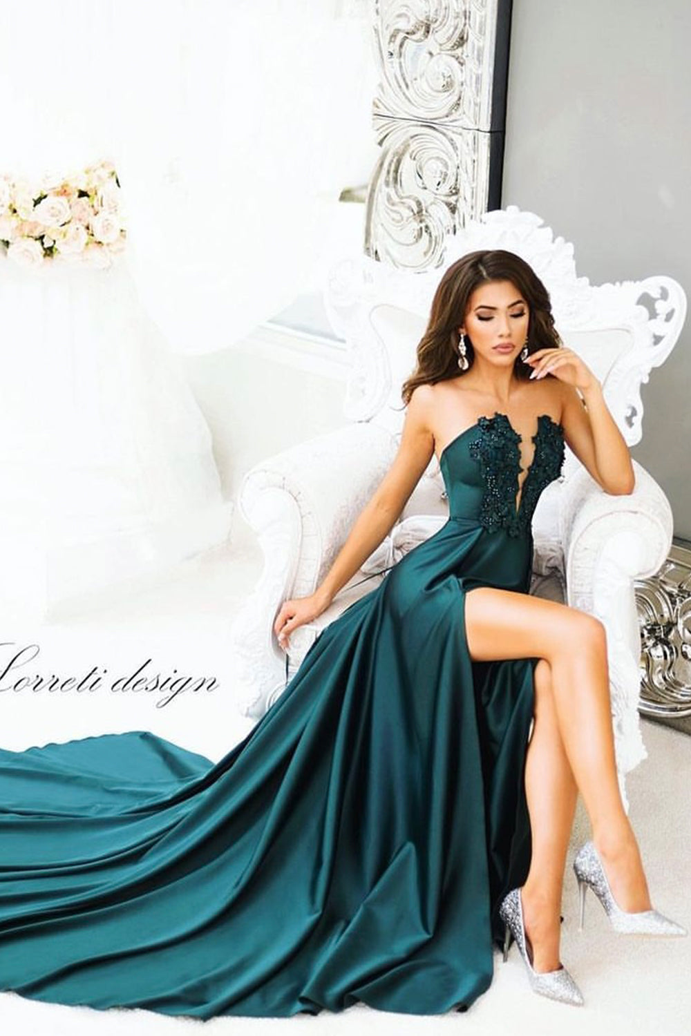 ДЪЛЪГ СЕТ ТОП С ПОЛА ILONA ДАНТЕЛА САТЕН ТЪМНО ЗЕЛЕН