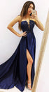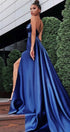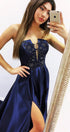 ДЪЛЪГ СЕТ ТОП С ПОЛА ILONA САТЕН ДАНТЕЛА ТЪМНО СИН