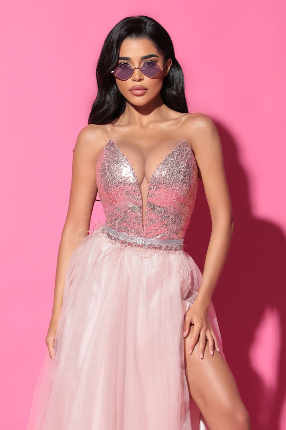 ДЪЛЪГ СЕТ ТОП С ПОЛА INAYA ПАЙЕТИ ТЮЛ ПУДРА
