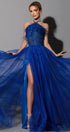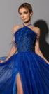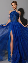 ДЪЛЪГ СЕТ ТОП С ПОЛА IVELINA ДАНТЕЛА ПЕРА ТЮЛ БРОКАТ КОБАЛТОВО СИН