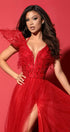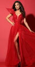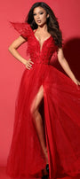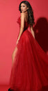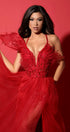 ДЪЛЪГ СЕТ ТОП С ПОЛА IVETA ДАНТЕЛА ГЛИТЕР ПЕРА ТЮЛ БРОКАТ ЧЕРВЕН