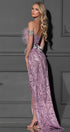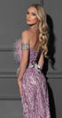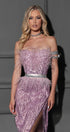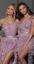 ДЪЛЪГ СЕТ ТОП С ПОЛА IVORY ДАНТЕЛА ГЛИТЕР ПЕРА ЛАВАНДУЛА