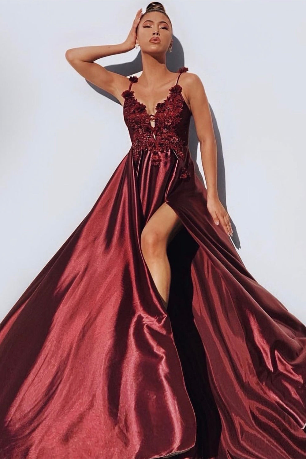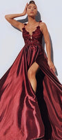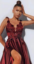 ДЪЛЪГ СЕТ ТОП С ПОЛА JASMINE САТЕН ДАНТЕЛА БОРДО
