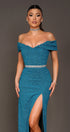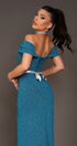 ДЪЛЪГ СЕТ ТОП С ПОЛА JESSICA ТРИКО ЛАМЕ ЛАЗУРНО СИН
