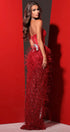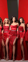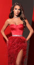 ДЪЛЪГ СЕТ ТОП С ПОЛА KENNEDY САТЕН ДАНТЕЛА ГЛИТЕР ПЕРА ЧЕРВЕН