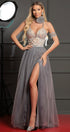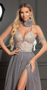 ДЪЛЪГ СЕТ ТОП С ПОЛА KENZIE ДАНТЕЛА ГЛИТЕР ТЮЛ БРОКАТ СРЕБЪРЕН С НЮД