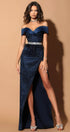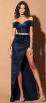 ДЪЛЪГ СЕТ ТОП С ПОЛА KRISTY ДАНТЕЛА ГЛИТЕР САТЕН ТЪМНО СИН