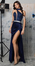 ДЪЛЪГ СЕТ ТОП С ПОЛА LEORA ДАНТЕЛА ГЛИТЕР САТЕН ТЪМНО СИН