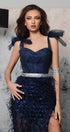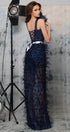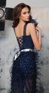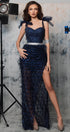 ДЪЛЪГ СЕТ ТОП С ПОЛА LESLIE ДАНТЕЛА ГЛИТЕР ПЕРА ТЪМНО СИН