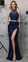 ДЪЛЪГ СЕТ ТОП С ПОЛА MADISON ДАНТЕЛА ГЛИТЕР САТЕН ТЪМНО СИН