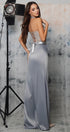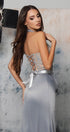 ДЪЛЪГ СЕТ ТОП С ПОЛА MADISON ДАНТЕЛА ГЛИТЕР САТЕН СРЕБЪРЕН С НЮД