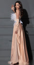 ДЪЛЪГ СЕТ ТОП С ПОЛА MAISY ДАНТЕЛА ГЛИТЕР ПЕРА САТЕН НЮД С БЯЛ