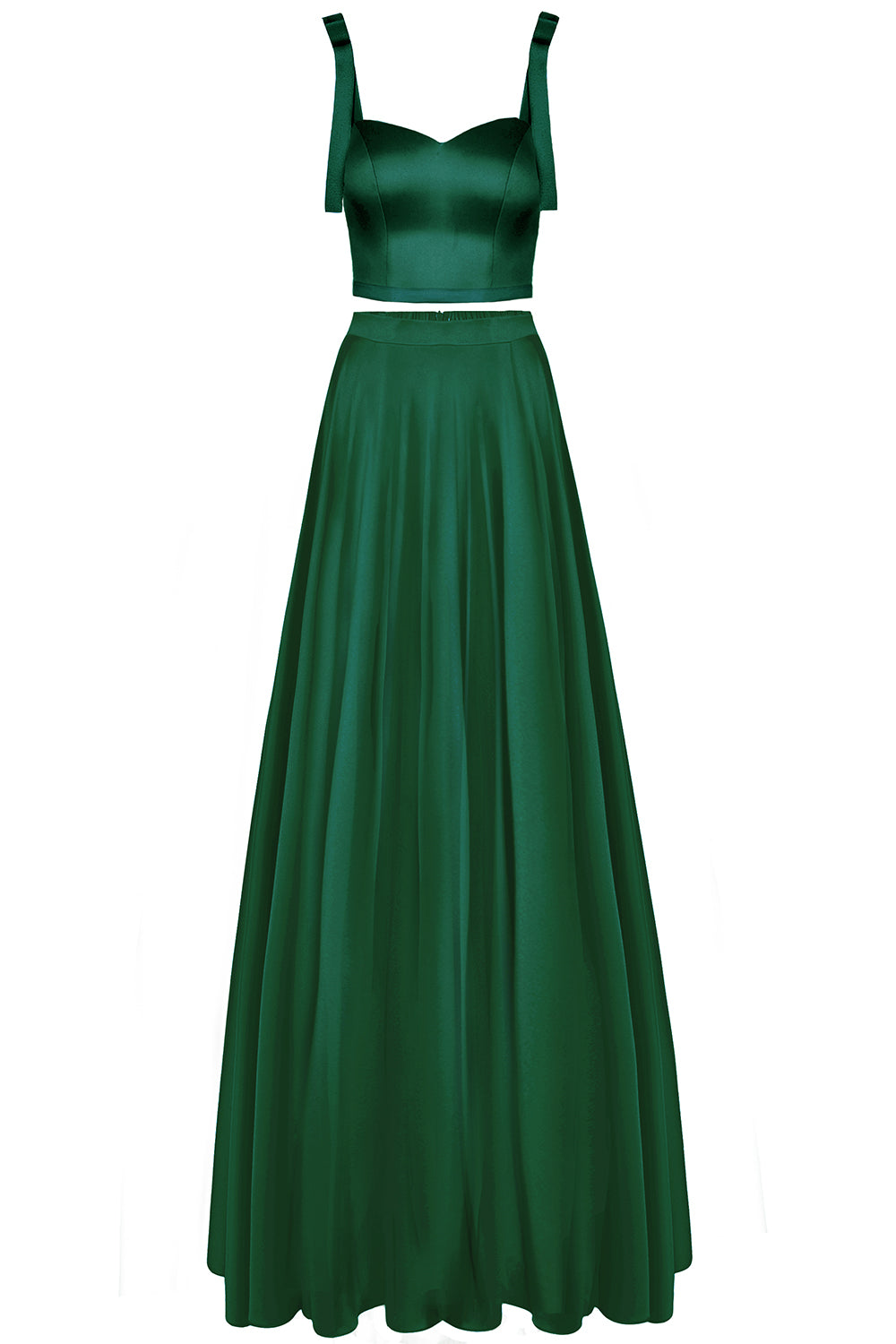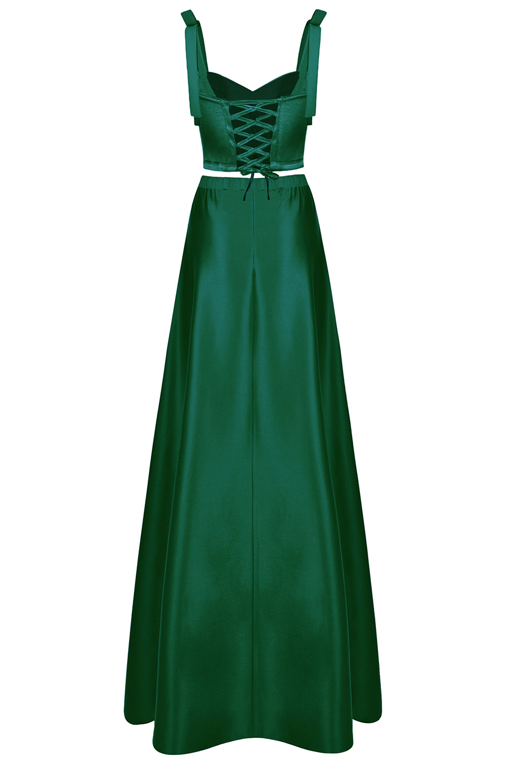 ДЪЛЪГ СЕТ MARILYN 2 ЧАСТИ ТОП С ПОЛА САТЕН ТЪМНО ЗЕЛЕН