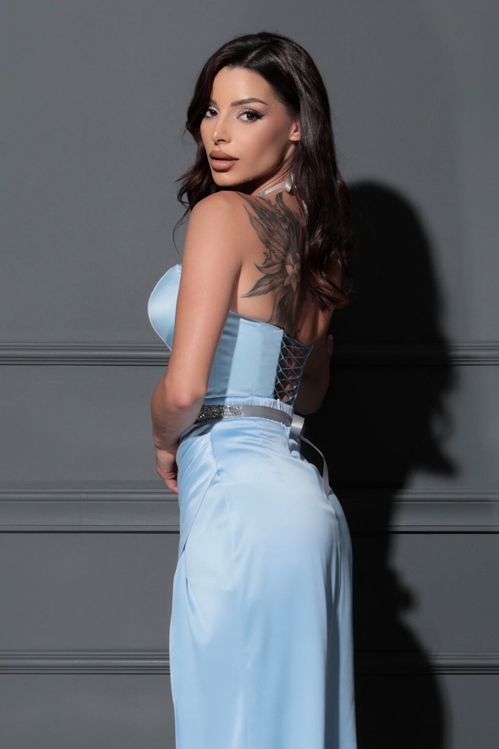 ДЪЛЪГ СЕТ ТОП С ПОЛА MARLEE САТЕН СВЕТЛО СИН