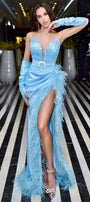 ДЪЛЪГ СЕТ 3 ЧАСТИ ТОП С ПОЛА MAYBELLE ПАЙЕТИ САТЕН ПЕРА СВЕТЛО СИН