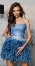 ДЪЛЪГ СЕТ ТОП С ПОЛА MEGAN ДАНТЕЛА ГЛИТЕР ТЮЛ БРОКАТ СВЕТЛО СИН