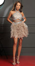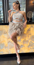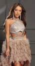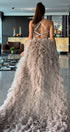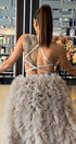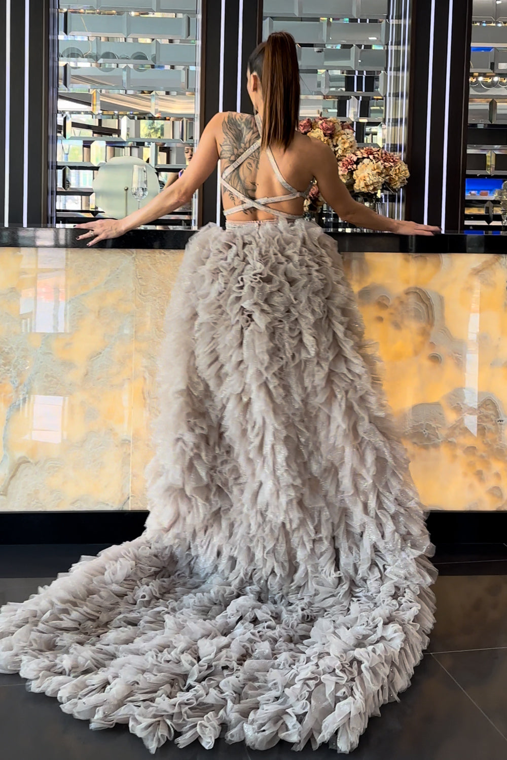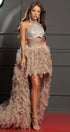 ДЪЛЪГ СЕТ ТОП С ПОЛА MEI ДАНТЕЛА ГЛИТЕР КАМЪНИ ТЮЛ БРОКАТ СРЕБЪРЕН С НЮД