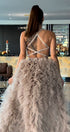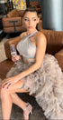Моля, не поставяйте роклята в пералня с центрофуга или в сушилня, както и не прилагайте агресивно третиране, за да запазите нейния луксозен силует и качество.